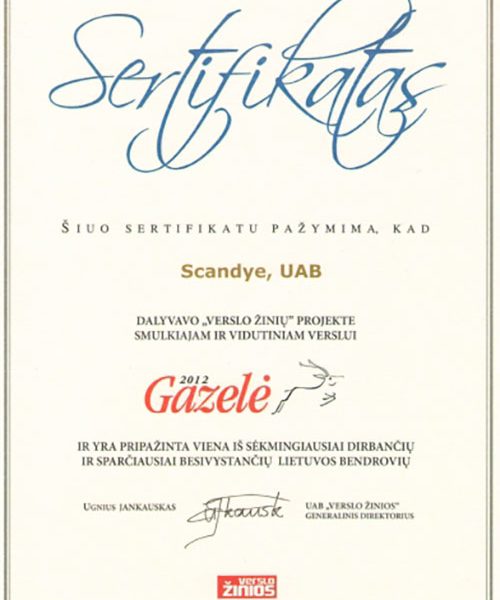 Devintus metus iš eilės dienraštis „Verslo žinios“ organizuoja „Metų gazelės“ apdovanojimus labiausiai augusioms įmonėms. Šis projektas organizuojamas ne tik Lietuvos, bet ir Švedijos, Lenkijos, Latvijos, Estijos, Rusijos, Austrijos, Slovėnijos verslo bendruomenėse. Bendrovėms suteikiama teisė naudoti „Gazelės“ ženklą, kuris vis plačiau pasa